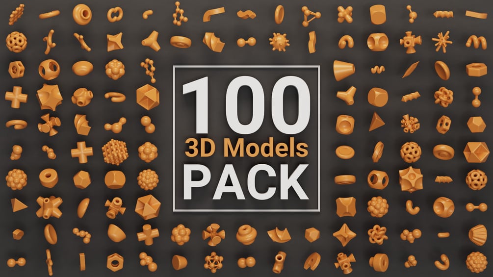 A pack of 100 abstract 3D models for your motion design projects. You can use the models for your personal and commercial projects.